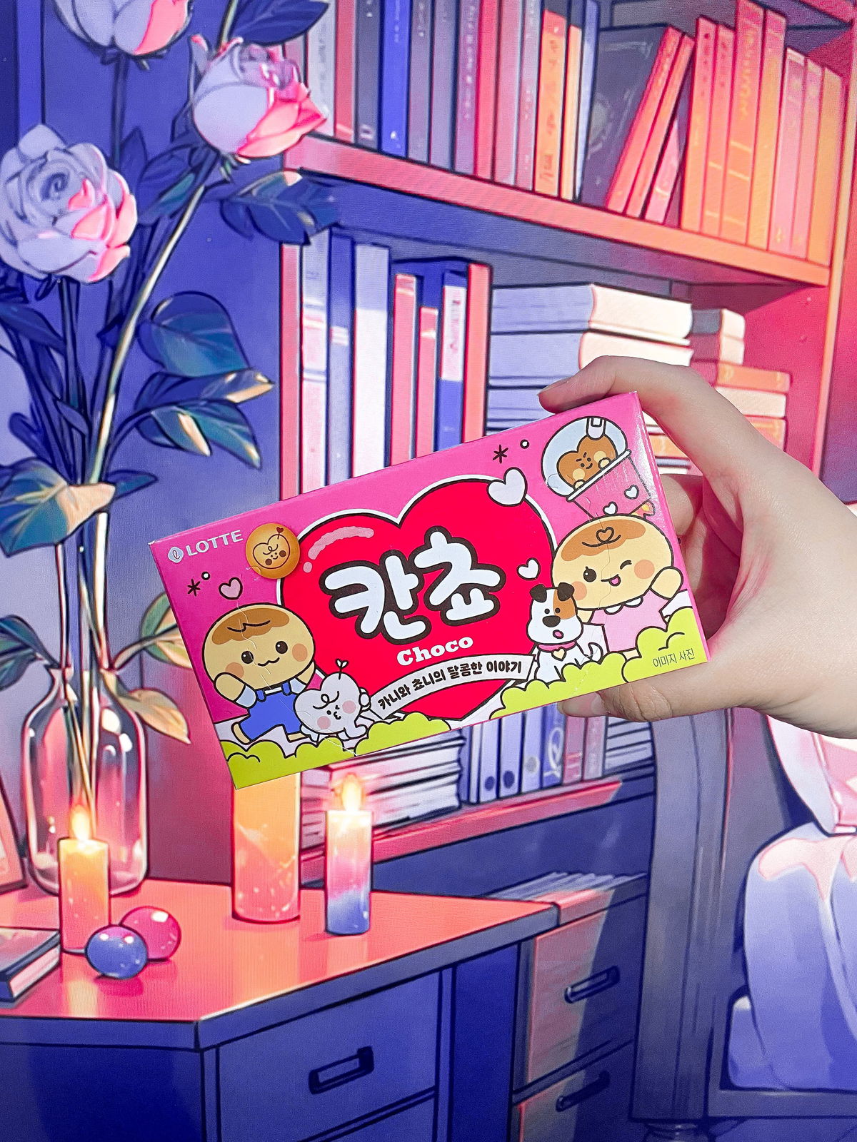 KANCHO son galletas coreanas rellenas, reconocidas por su formato pequeño y su diseño ilustrado en cada unidad. Están elaboradas con una galleta crocante de cacao que encierra un relleno cremoso de chocolate, logrando un contraste simple entre textura y dulzor. El sabor es suave y equilibrado, con notas de cacao ligero y un centro dulce que no resulta empalagoso. La galleta se rompe con facilidad y el relleno aporta una sensación cremosa que completa la experiencia. Su tamaño individual las hace prácticas para picar o compartir.