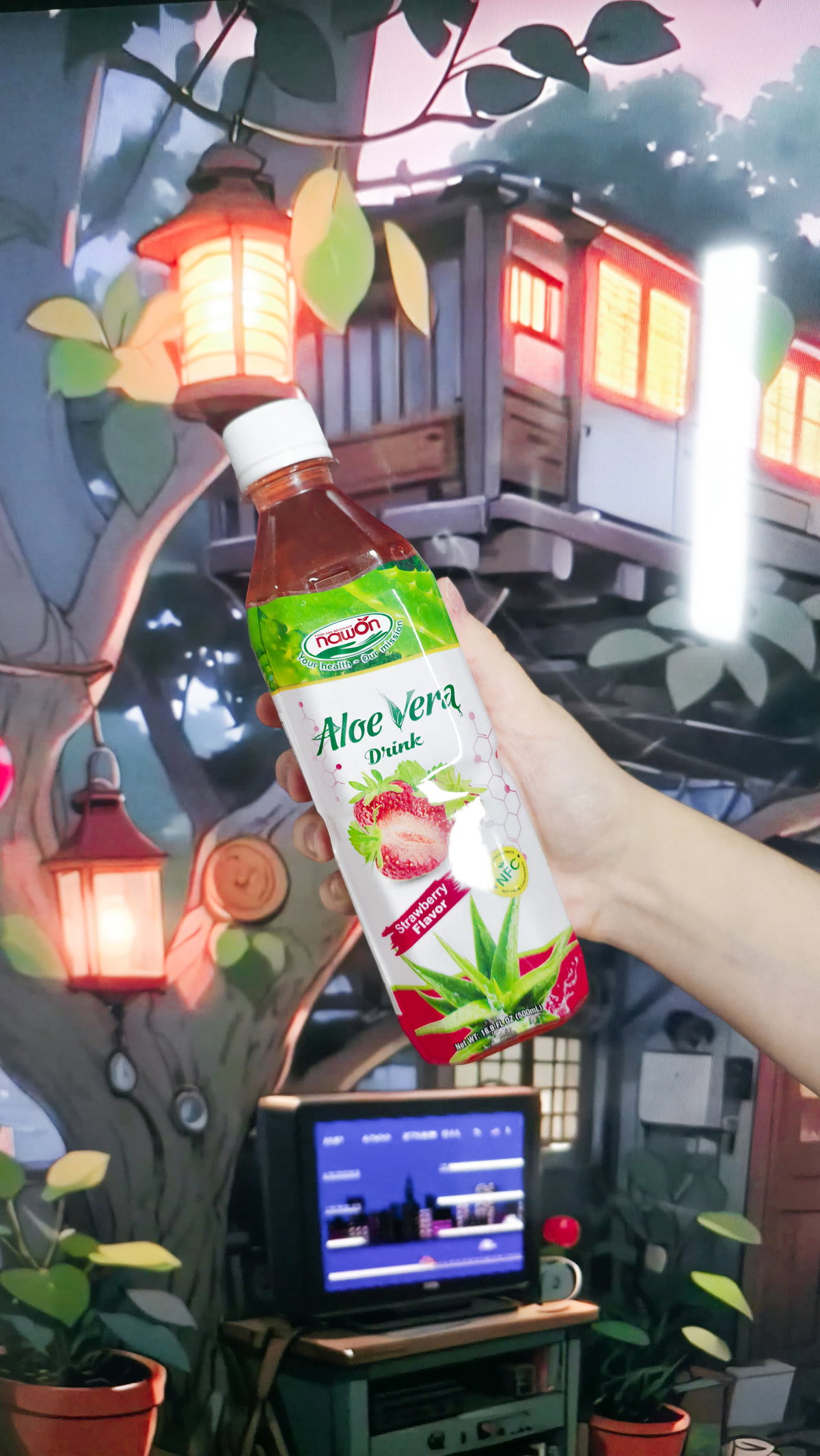 La NAWON Aloe Vera Drink saborizada es una bebida elaborada a partir de jugo de aloe vera, agua y azúcar, con la adición de trozos de pulpa de aloe que aportan textura. Según la variedad, incluye aromatizantes frutales (como mango, uva, lychee, frutilla o ananá) que modifican el perfil sin cambiar la base del producto. El sabor combina un dulzor moderado con un toque ligeramente herbal propio del aloe. Las versiones saborizadas suman notas frutales claras, generalmente más aromáticas que ácidas. La bebida es fluida, con pequeña pulpa de aloe que se mastica fácilmente y genera contraste de textura.
