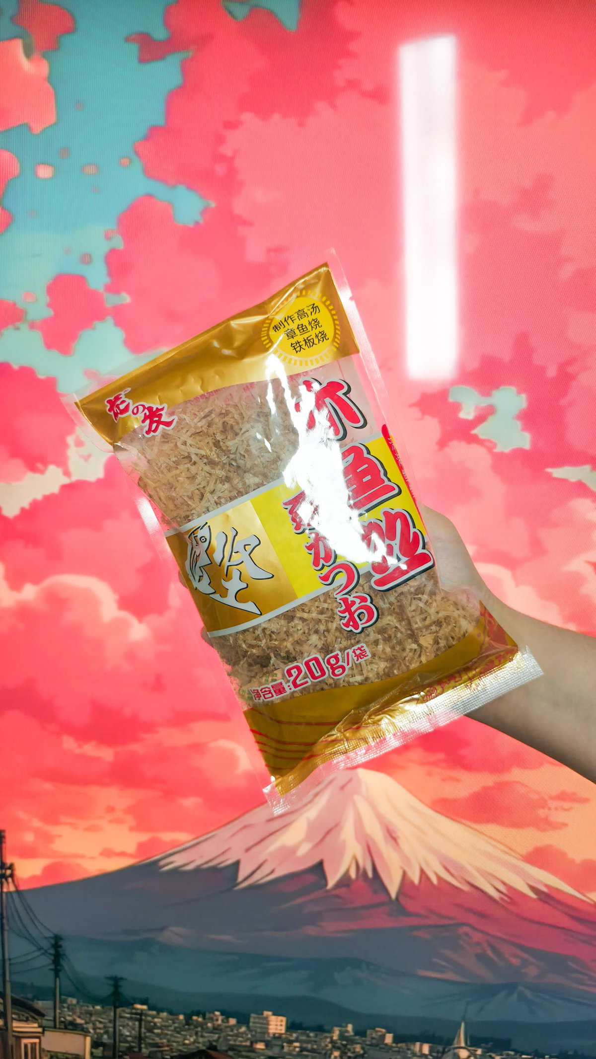 El Katsuobushi son escamas finas de bonito (atún listado) que han sido cocidas, ahumadas y secadas mediante un proceso tradicional japonés que concentra su sabor. El resultado es un producto ligero, de textura seca y quebradiza, que se desarma fácilmente. Al entrar en contacto con calor o humedad, las escamas se ablandan y liberan un aroma intenso. Su sabor es profundamente umami, con notas ahumadas y salinas bien definidas, que aportan profundidad a distintas preparaciones. Se utiliza principalmente para elaborar dashi (caldo base japonés), pero también puede agregarse directamente sobre platos calientes como arroz, ramen, okonomiyaki o takoyaki, donde el calor hace que las escamas se muevan y se integren. Por su concentración, se emplea en pequeñas cantidades, funcionando más como un potenciador de sabor que como ingrediente principal. Es un básico en la cocina japonesa para reforzar caldos y dar mayor complejidad a preparaciones simples.